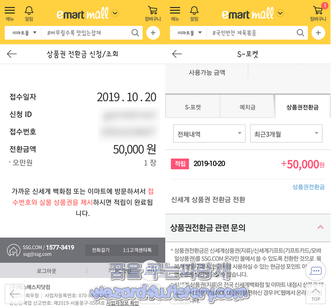 신세계상품권->SSG머니로 전환완료가 됩니다. 사용완료한 상품권은 폐기하시면 됩니SSG머니는 SSG페이를 사용할 수 있는 매장에서 사용 가능합니다. 만약 이마트몰 을 사용을 하고 있으며 이마트몰 같은 경우에는 마이페이지에 가서 상품권 전환을 눌러 줍니다.