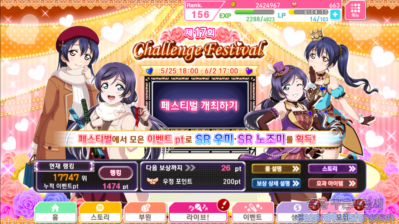 그리고 이벤트인 제17회 챌린지 페스티벌 이벤트에도 좋은 결과가 있으시길 바랍니다.