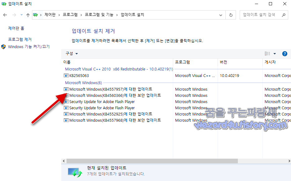 문제를 일으키는 업데이트는 다음과 같습니다.