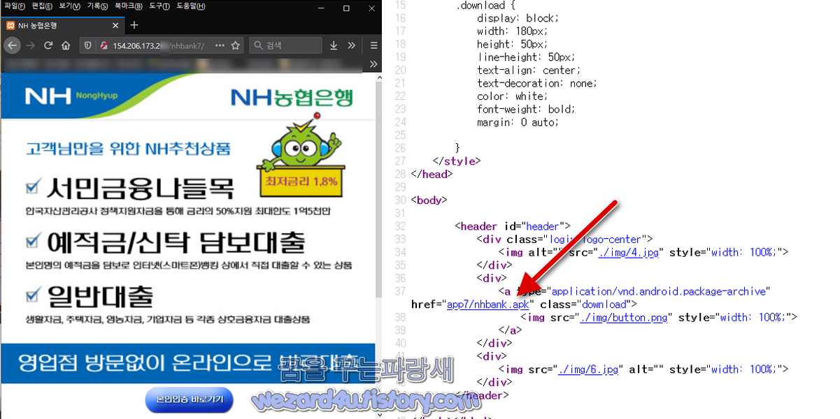 오늘은 NK 농협 은행으로 속이는 피싱 사이트에 대해 알아보겠습니다. 일단 해당 피싱사이트에서는 악성코드가 배포하고 있으며 해당 사이트에 대해 알아보겠습니다. 일단 유포되고 있는 사이트는 다음과 같습니다.