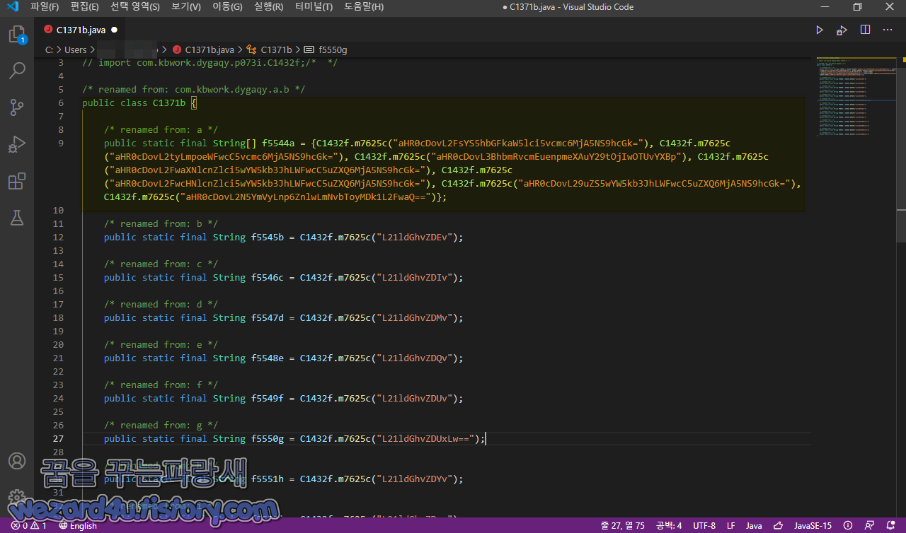 \com.kbwork.dygaqy.p063a.C1371b 에 보면 다음과 같이 보일 것입니다. 여기서 암호화되어서 작동 URL 주소들은 다음과 같습니다.