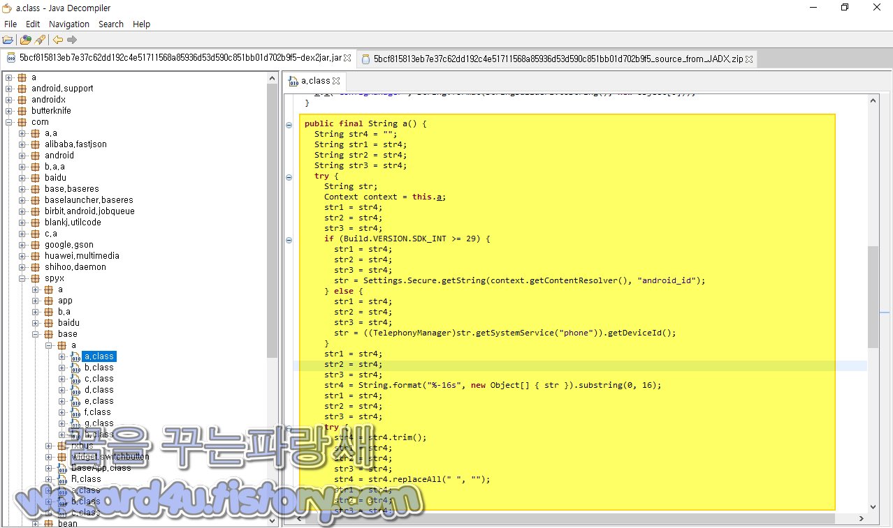 그리고 스마트폰 IMEI 정보를 훔치기 위한 코드가 다음과 같이 포함이 되어져 있습니다.