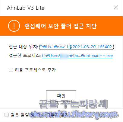 보안 폴더로 지정한 폴더에는 허용 프로세스 외에는 접근되지 않음