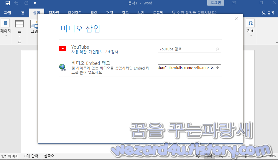 워드 문서에 유튜브 동영상을 넣은 방법은 간단합니다. 마치 지난 시간에 소개해 드린 LibreOffice(리브레오피스) 프레젠테이션에 네이버 동영상 넣기 방법하고 비슷합니다.