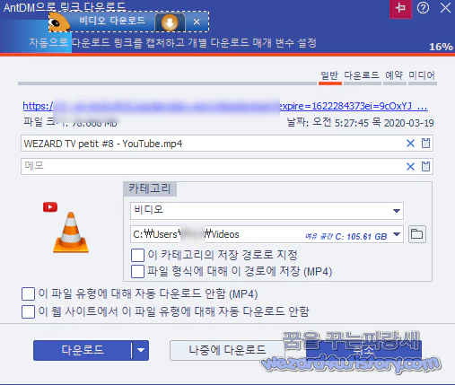 그리고 동영상 사이트에서 동영상이 보이면 다음과 같이 개미 아이콘이 나오고 비디오 다운로드 라는 것을 볼 수가 있습니다. 여기서 비디오 다운로드 부분에서 화살표를 클릭을 해주면 동영상을 저장할 방법 동영상 품질, MP3형식으로 음원만 추출 등을 진행할 수가 있습니다. 일단 개인적으로 프로모션 버전으로 이용해서 리뷰를 적어보지만, 개인적으로 블랙프라이데이 때 해당 제품을 평생 사용 버전을 구매해서 사용할 것입니다. 일단 동영상 다운로드,파일 다운로드 같은 프로그램이 필요하신 분들은 가격은 11.95 달러(1년 라이센스),26.95(평생 버전) 2021년 5월 29일 토요일 오전 4:38 기준 가격이면 성능에 가격은 저렴한 것 같습니다. 일단 기본적으로 앞서 이야기한 것처럼 해외 결제가 가능한 신용 카드, 체크카드가 있으면 결제를 해서 사용을 할 수가 있으니 불법으로 사용하는 것보다는 정품을 사용하시는 것이 악성코드 같은 것에 감염되는 것도 최소화할 수가 있고 이런 프로그램들이 계속 서비스가 되는 길일 것입니다. 이상 Ant Download Manager(앤트 다운로드 매신저)에 대해 간단하게 적어 보았습니다.